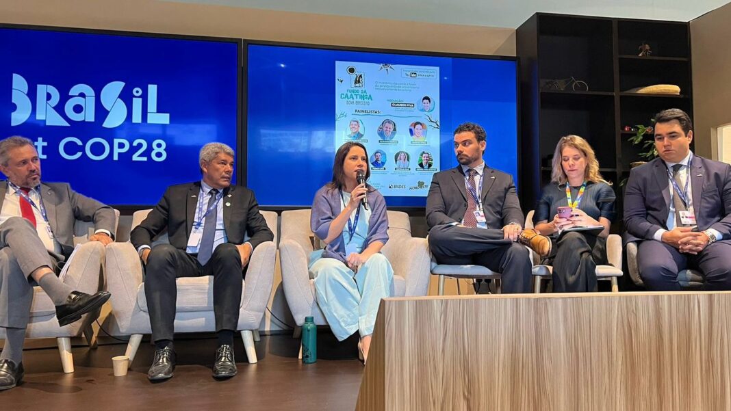 Encerrando os compromissos na Conferência das Nações Unidas sobre Mudanças Climáticas (COP 28), em Dubai, nos Emirados Árabes, a governadora Raquel Lyra participou, neste domingo (03), de um encontro com governadores do Nordeste e representantes do Banco Nacional de Desenvolvimento Econômico e Social (BNDES). No encontro, foi tratada uma proposta da criação do Fundo Caatinga, iniciativa do Consórcio Nordeste e BNDES, que visa a preservação do único bioma exclusivamente brasileiro.