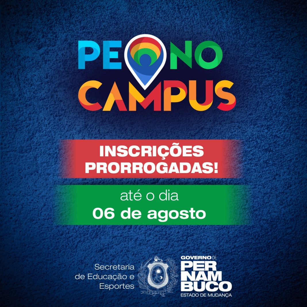 As inscrições para o programa PE no Campus foram prorrogadas. Os interessados devem se inscrever até o dia 06 de agosto, por meio do site: https://www3.educacao.pe.gov.br/PPC. Ao todo, estão sendo ofertadas mil bolsas para estudantes egressos de escolas públicas estaduais.