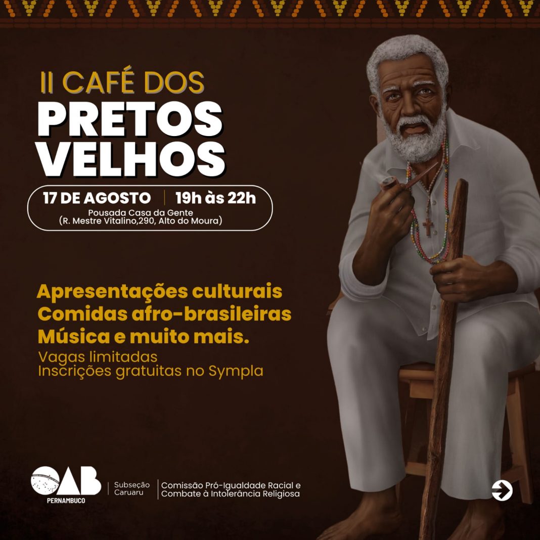 A OAB Caruaru, por meio da Comissão Pró-Igualdade Racial e combate à Intolerância Religiosa, vai realizar nesta quinta-feira (17), o II Café dos Pretos Velhos, a partir das 19h, na Pousada Casa da Gente, localizada no Alto do Moura.