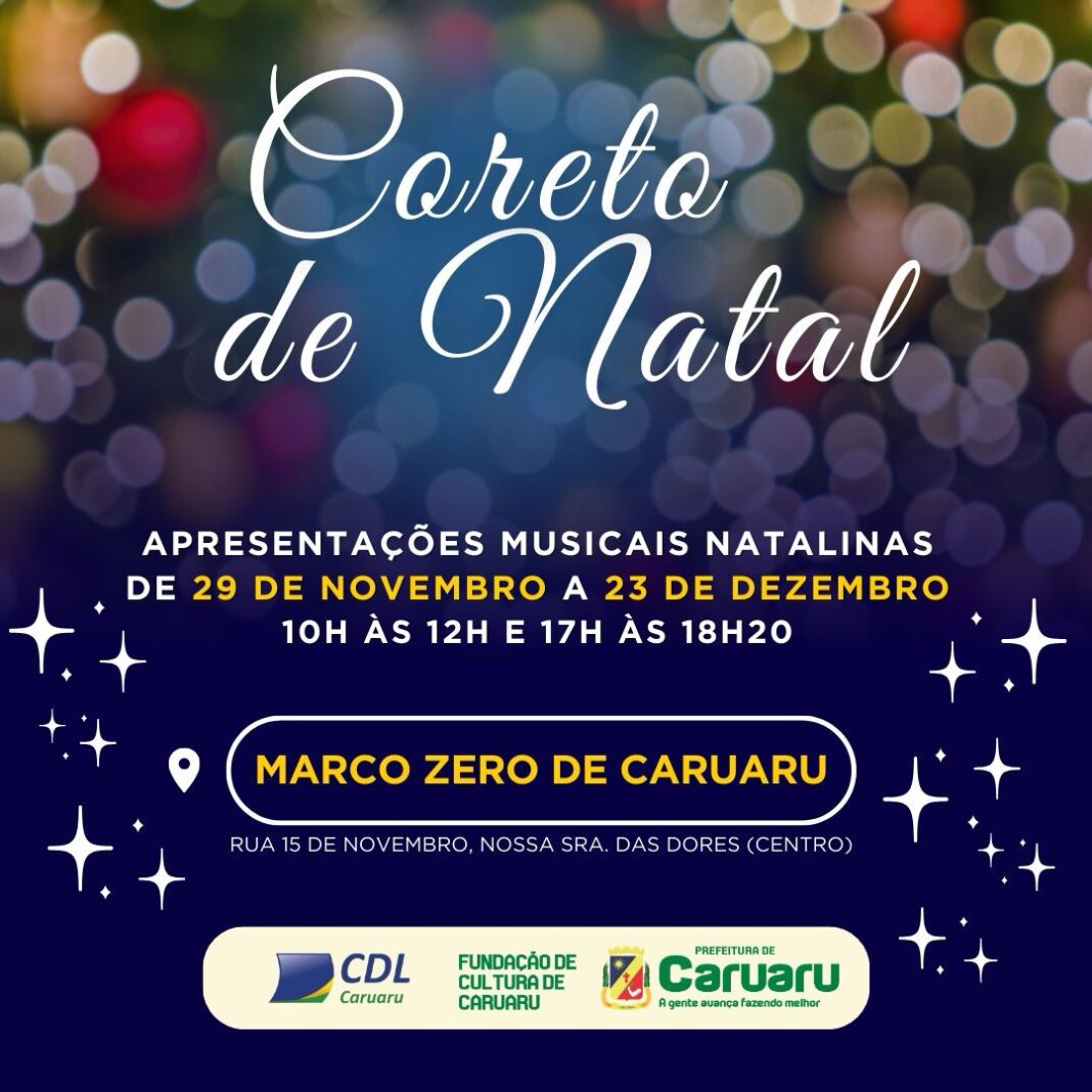 A Prefeitura de Caruaru, por meio da Fundação de Cultura e em parceria com a Câmara de Dirigentes Lojistas (CDL), divulga a programação completa de natal que será realizada no Marco Zero.