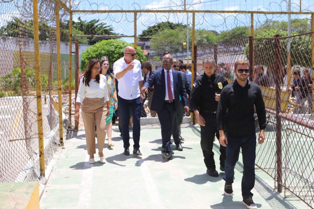 A secretária de Justiça e Direitos Humanos de Pernambuco, Lucinha Mota, apresentou o sistema prisional do estado ao ministro de Direitos Humanos e Cidadania, Silvio Almeida, nesta terça-feira (17/10). Os gestores visitaram as dependências do Presídio Juiz Antônio Luiz Lins de Barros (Pjallb) e os espaços e a obra do Presídio Frei Damião de Bozzano (PFDB), ambos localizados no Complexo do Curado, no bairro do Sancho, no Recife. O secretário Nacional de Política Penitenciária, Rafael Velasco, também acompanhou a agenda.