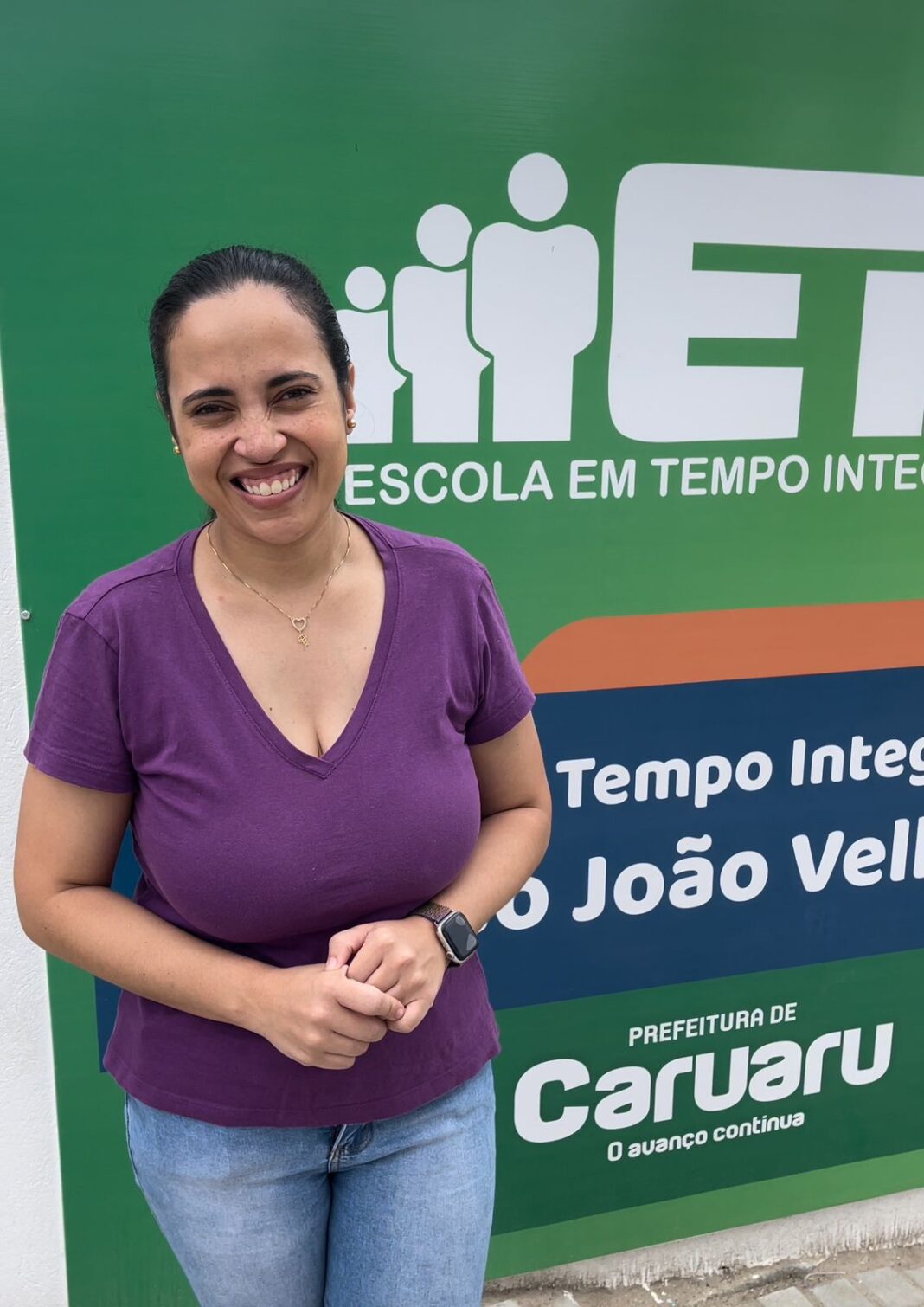 A Prefeitura de Caruaru entregou a ETI Capitão João Velho, em Serra Velha, no início deste ano e, nesta quarta (21), Aline foi visitar a escola pela primeira vez.