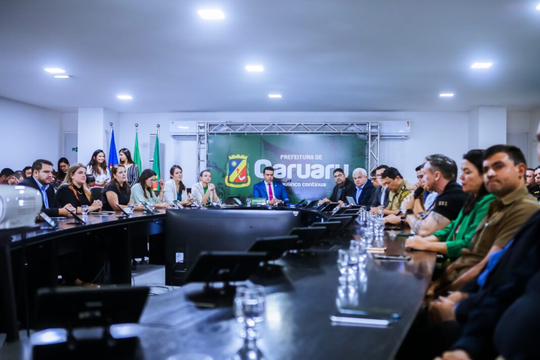 Ao lado de representantes dos poderes públicos federal, estadual e municipal, o prefeito de Caruaru, Rodrigo Pinheiro, conduziu o encontro na Sala de Monitoramento da Prefeitura. Na ocasião, foram apresentados os resultados e as expectativas em relação às ações de segurança no município.