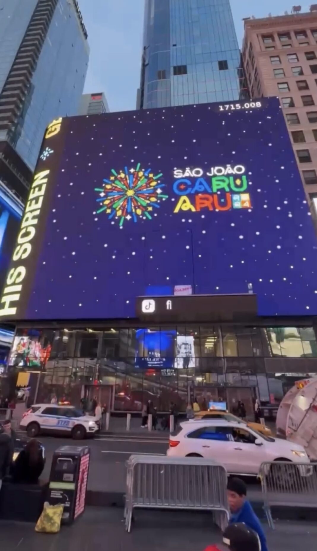 O clima junino chegou nos Estados Unidos e a Prefeitura do “país” de Caruaru recebeu o vídeo do São João que foi exibido em dos principais símbolos de uma das maiores cidades do planeta. Não tem como negar: Caruaru tem mesmo o maior e melhor festejo junino do mundo!