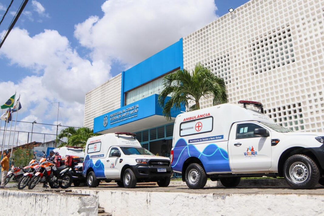 Novos veículos para a frota da Secretaria de Saúde e Bem-Estar foram entregues na manhã desta quinta-feira (08), pela Prefeitura da Vitória de Santo Antão, em um ato ocorrido em frente ao Palácio José Joaquim da Silva Filho, que teve a presença de servidores, vereadores e convidados. No total, foram sete ambulâncias, duas motolâncias, e uma moto administrativa para o Serviço de Atendimento Móvel de Urgência (Samu), que também recebeu novos fardamentos.