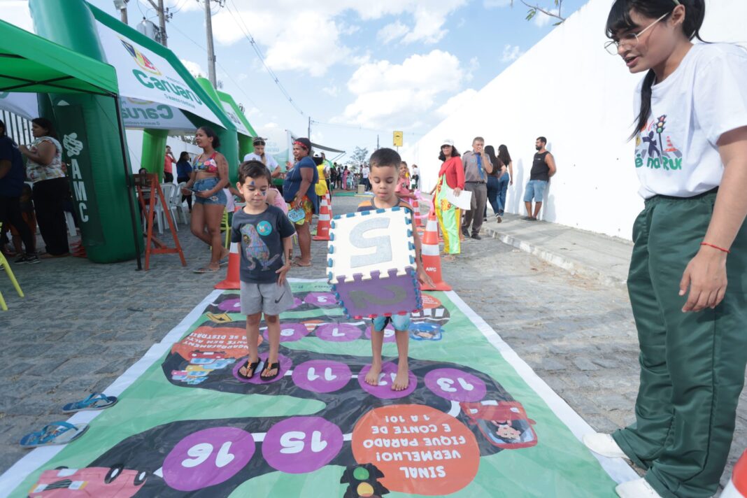 A criançada pôde aproveitar as brincadeiras, contações de histórias, atividades com música, pintura de rosto, fortalecendo os vínculos comunitários. Uma dessas ações foi o projeto “Pé na Rua”, da AMC, que levou, de forma lúdica, o aprendizado sobre o trânsito, com o resgate de brincadeiras infantis ao ar livre, no intuito de reduzir o tempo que as crianças passam diante das telas.