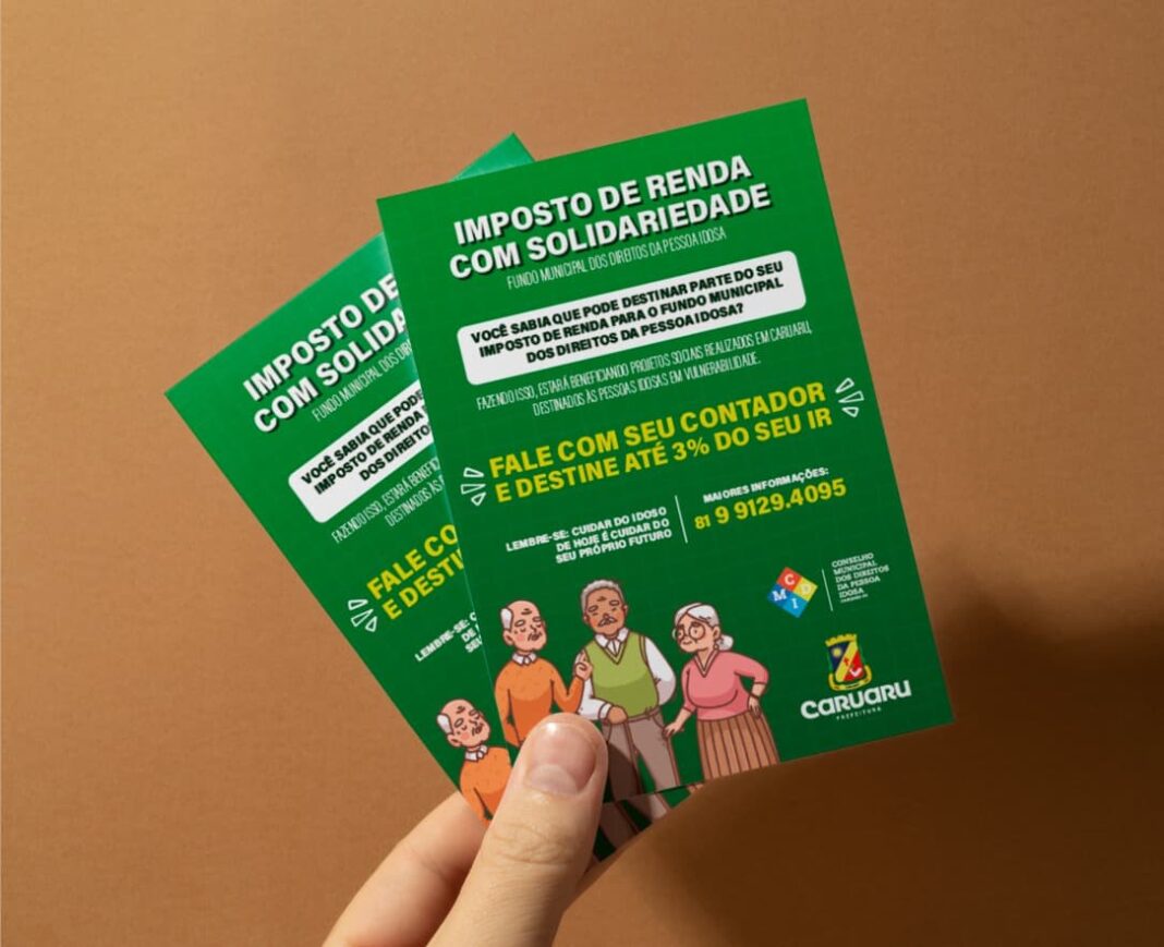O Conselho Municipal da Pessoa Idosa de Caruaru, com o apoio da Secretaria de Assistência Social e Combate à Fome, lança a campanha “Imposto de Renda com Solidariedade”, com o objetivo de incentivar a população a destinar parte do Imposto de Renda (IR) ao Fundo Municipal dos Direitos da Pessoa Idosa (FMDPI). A ação, que vai até maio de 2025, busca conscientizar sobre a importância do apoio a políticas públicas voltadas à promoção e proteção da pessoa idosa no município.