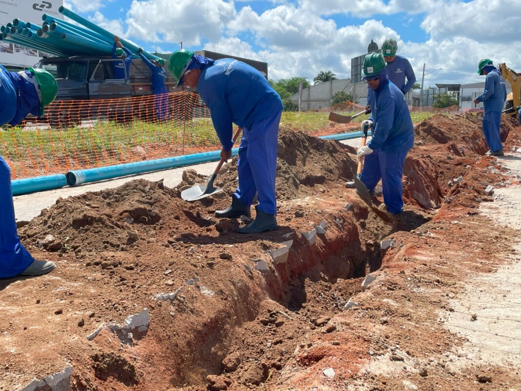 A primeira etapa da obra foi realizada em julho de 2024, onde técnicos da Compesa iniciaram o assentamento de aproximadamente 1.600 metros de adutoras, o que incluiu interligações, na avenida Portugal e na Rua Lindalva Vieira.
