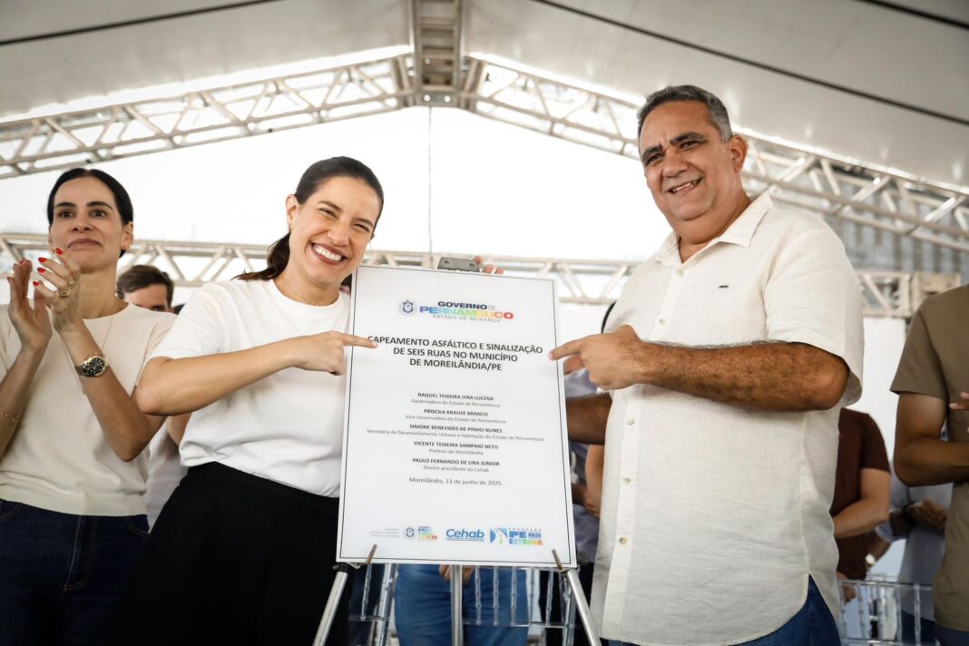 “Uma alegria muito grande poder estar aqui em Moreilândia, chegando à vida da população que mais precisa, com calçamento e asfalto na cidade, além da estrada da PE-540, que liga a cidade ao destino Caririmirim, uma rodovia que foi sonhada há décadas por muitas gerações. Para mim é uma alegria poder como governadora estar inaugurando um tempo novo nessa cidade e uma nova creche, que estará no distrito”, destacou a governadora Raquel Lyra.