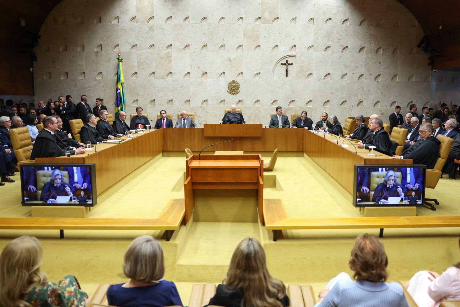 A solenidade reuniu autoridades dos três poderes, entre elas o presidente da República, Luiz Inácio Lula da Silva; o vice-presidente, Geraldo Alckmin; o presidente da Câmara dos Deputados, Hugo Motta; e o presidente do Senado Federal, Davi Alcolumbre.
