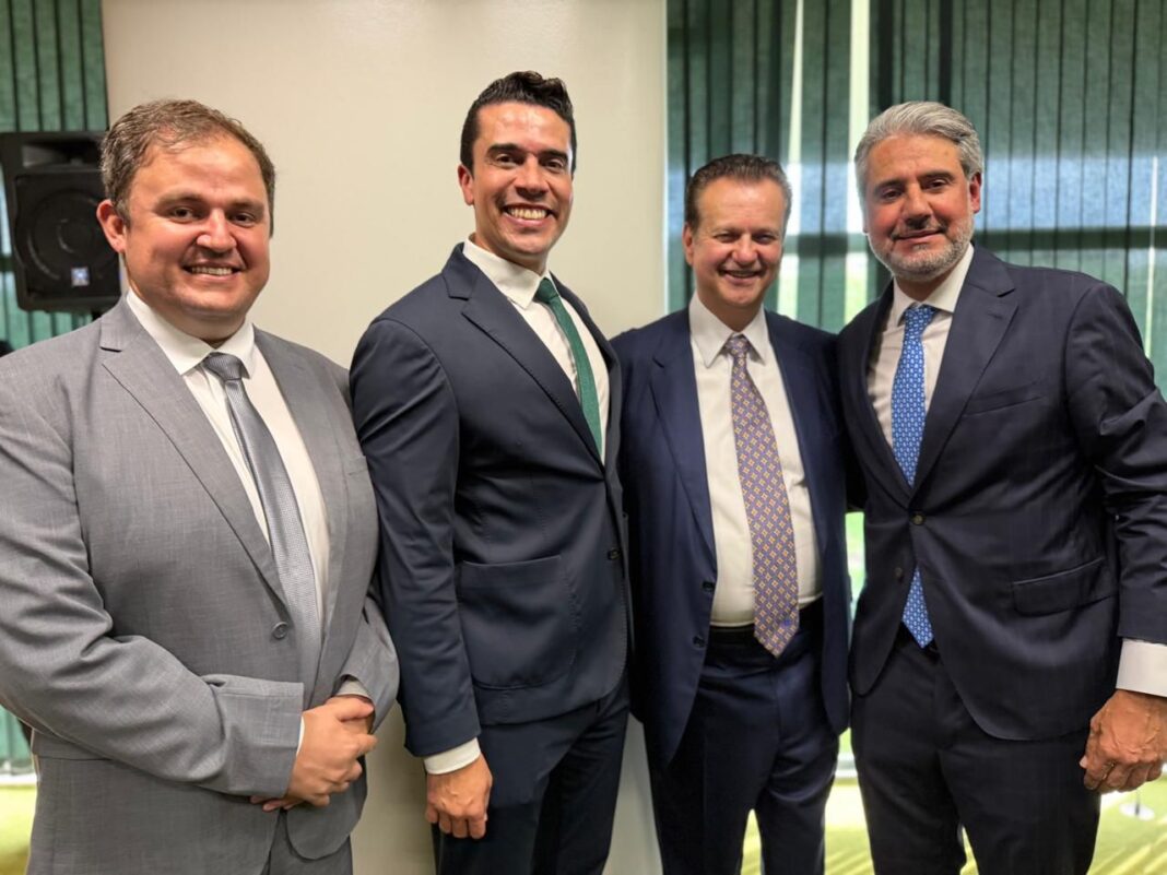 O prefeito de Caruaru, Rodrigo Pinheiro, e o secretário de Articulação Política, Anderson Luiz, prestigiaram, nesta terça-feira (25), a filiação do deputado federal Fernando Monteiro ao PSD, em ato realizado na Câmara dos Deputados, em Brasília. O evento contou com a presença da governadora Raquel Lyra, do presidente nacional do partido, Gilberto Kassab, e dos ministros José Múcio Monteiro, Alexandre Silveira e André de Paula, além de outras lideranças nacionais e estaduais.
